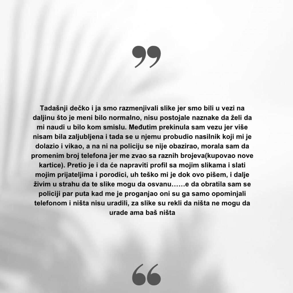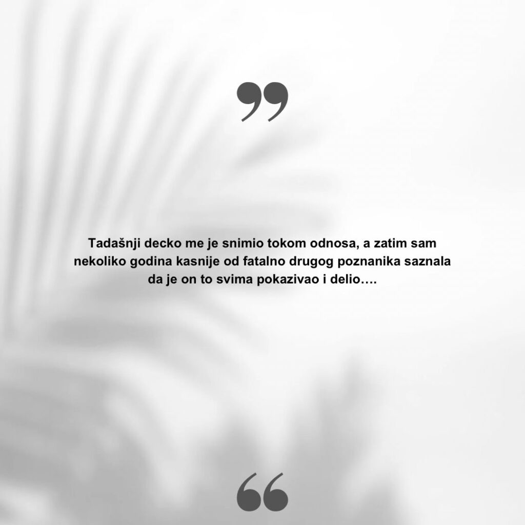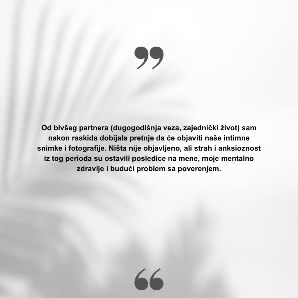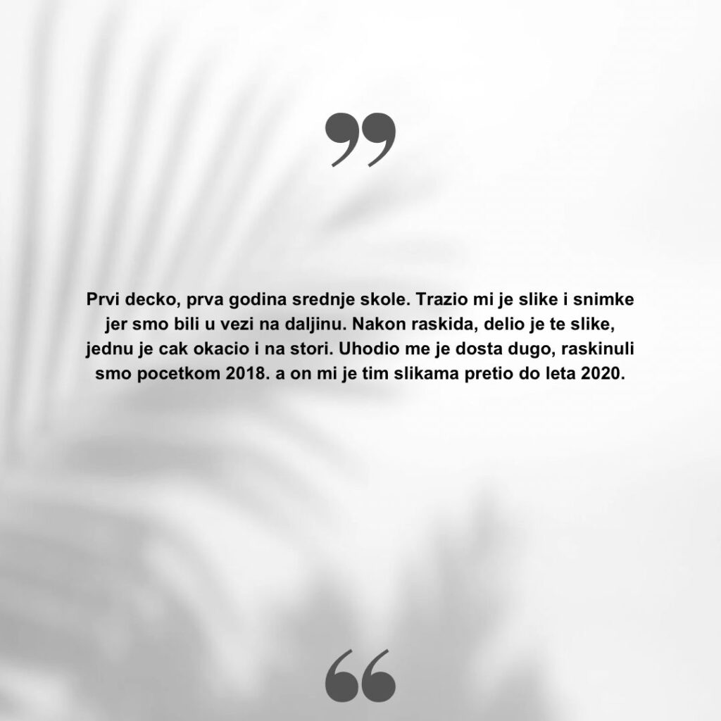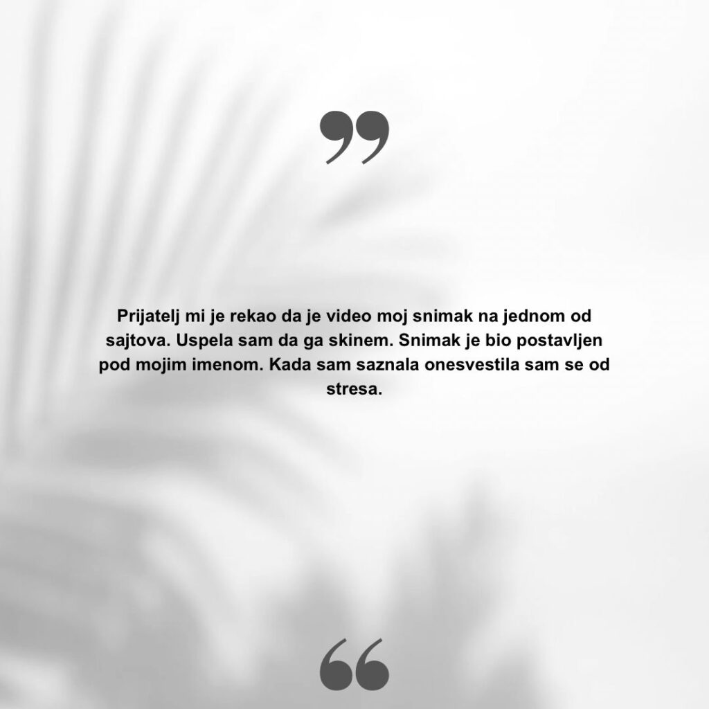 “Pišem vam iz razloga što sam pročitao vaš blog na temu osvetničke pornografije i želim da podelim moje iskustvo sa vama kako biste bolje prepoznali problem i načine borbe protiv ovakvih i sličnih društvenih problema.