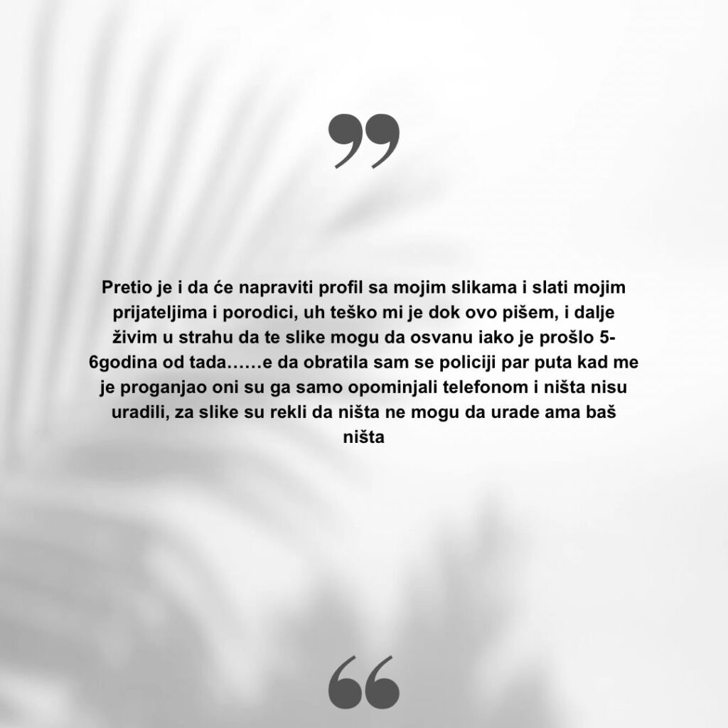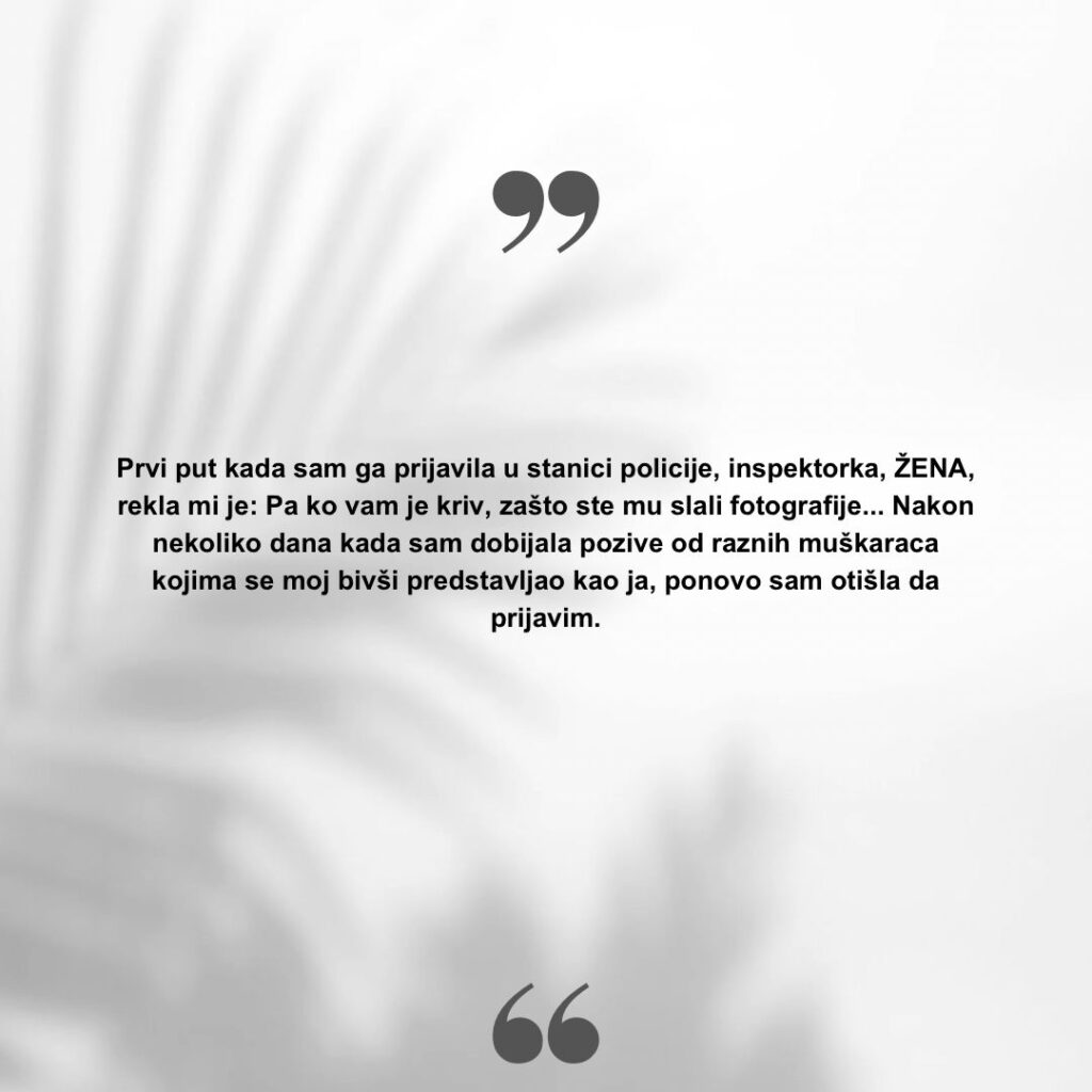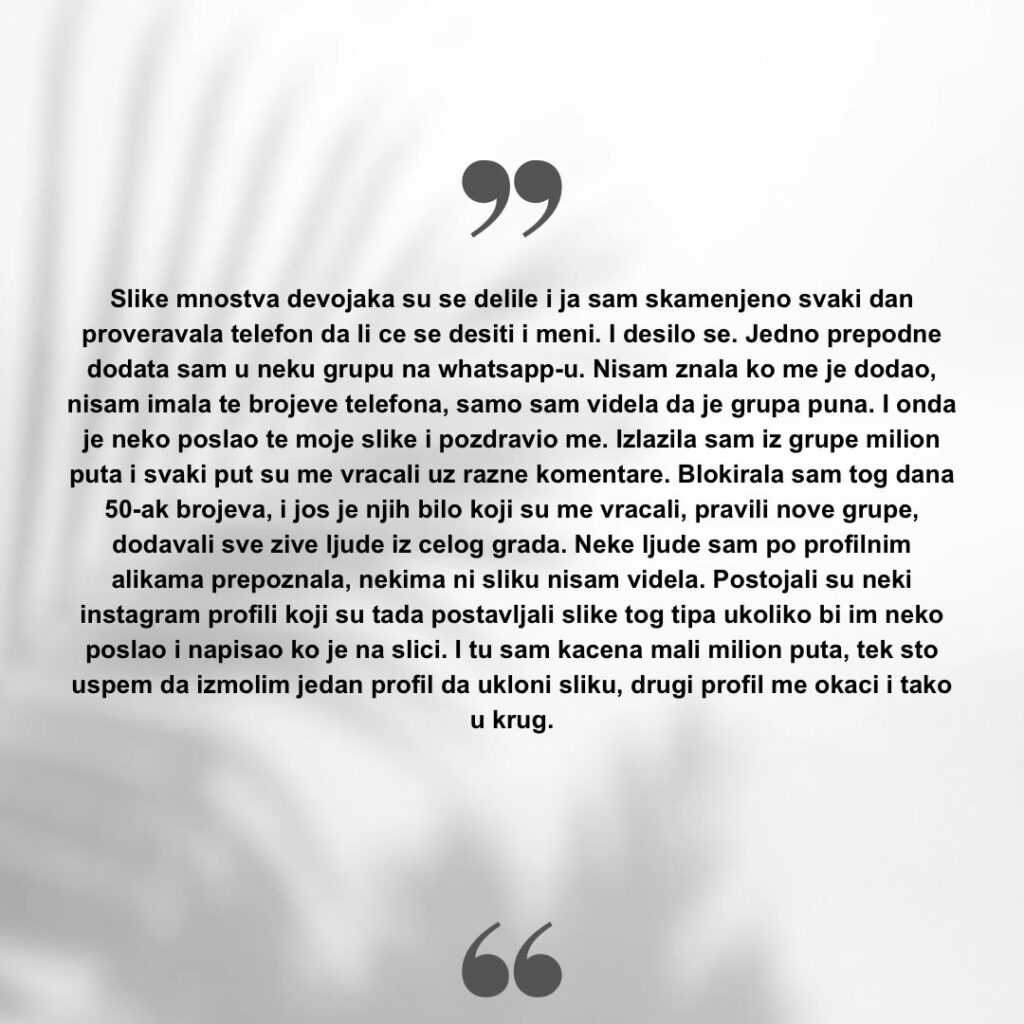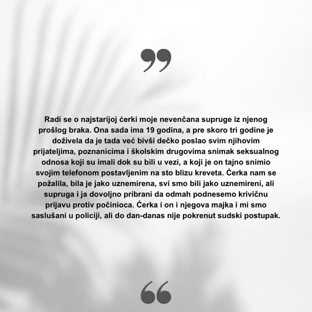 “Pišem vam iz razloga što sam pročitao vaš blog na temu osvetničke pornografije i želim da podelim moje iskustvo sa vama kako biste bolje prepoznali problem i načine borbe protiv ovakvih i sličnih društvenih problema.