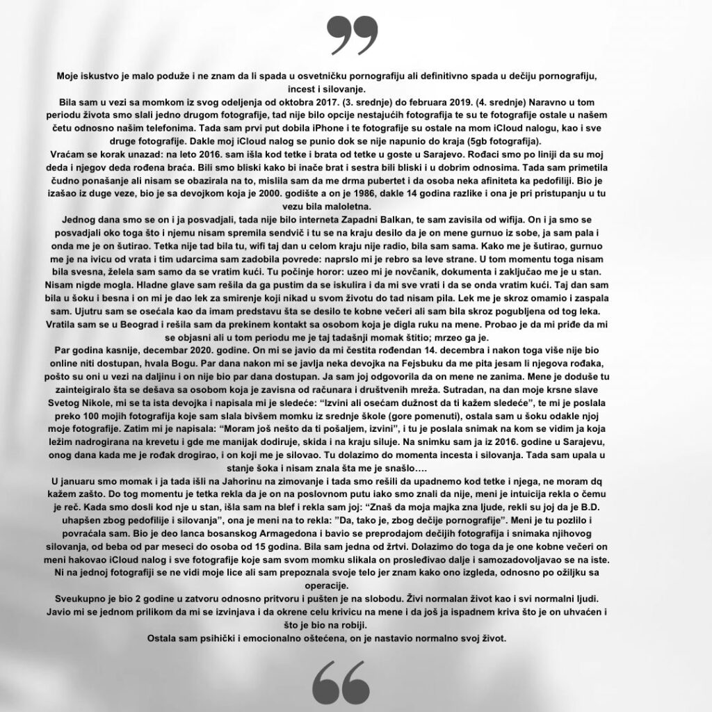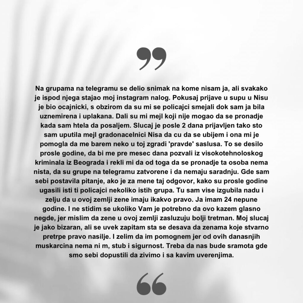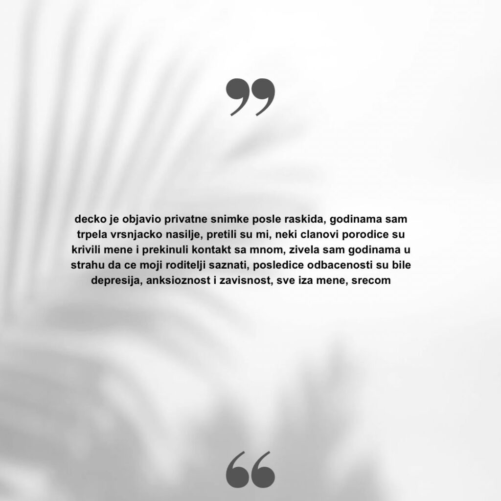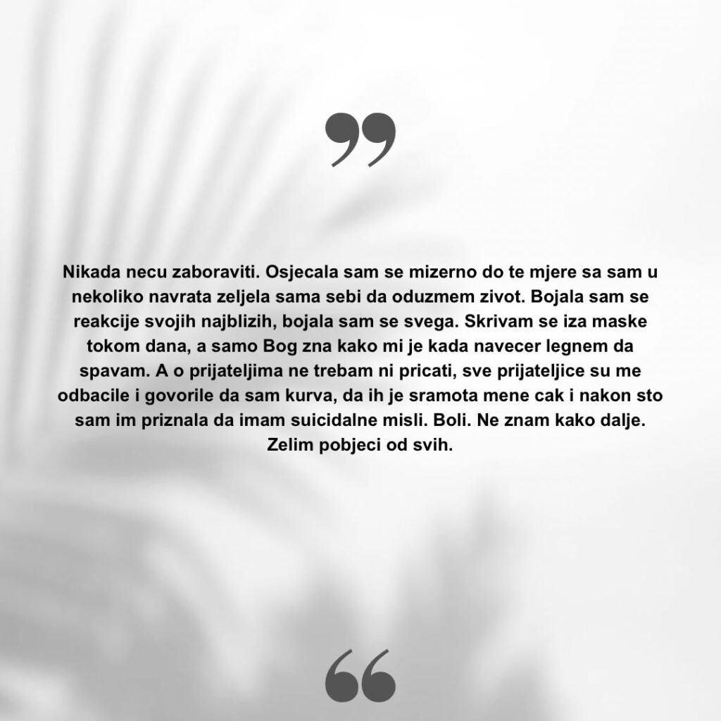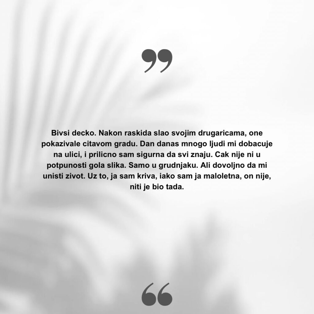 DISCLAIMER: Ukoliko bilo koja od žrtvi odluči da ipak ne želi da se njena ispovest nalazi na našem blogu, može nam pisati na društvenim mrežama, i ispovest će odmah biti uklonjena. Hvala na hrabrosti.